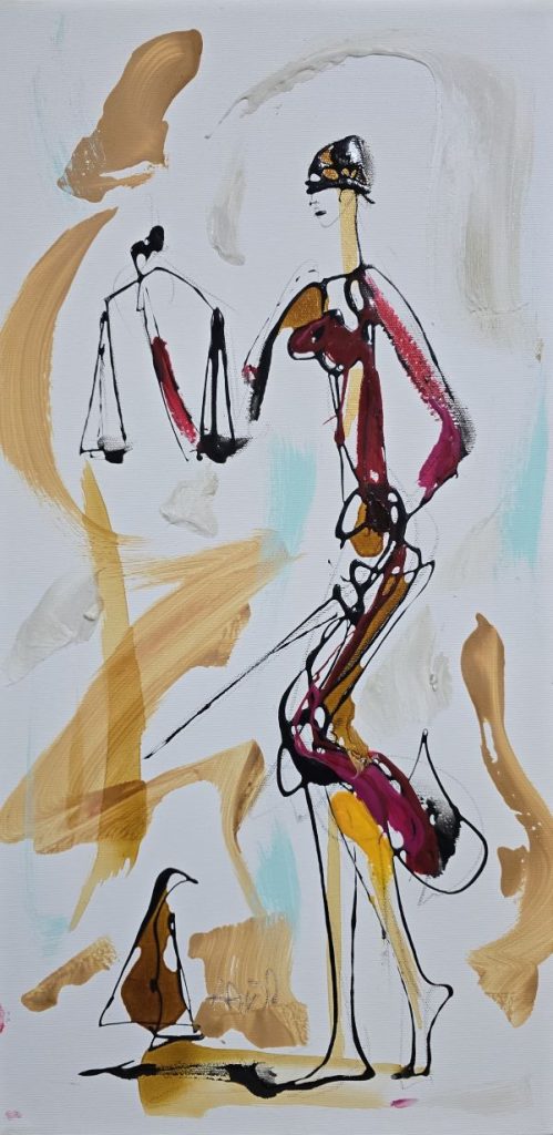 „Boginja pravde 1“ – savremeno umetničko delo akademskog slikara Dušana Rajšića, koje simbolizuje ravnotežu, snagu i unutrašnji mir. Na platnu oživljava moćni ženski lik, oličenje pravde i mudrosti, prikazan kroz bogate tonove akrila i precizne poteze majstorske ruke.