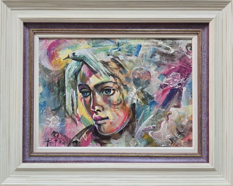 Ulje na platnu koje spaja nežnost i slobodu kroz susret devojke i ptice. Svaki potez četkice akademskog slikara Nebojše Petrovića Petre otkriva tihe emocije, unutrašnji svet i mir trenutka koji poziva na introspektivno gledanje.