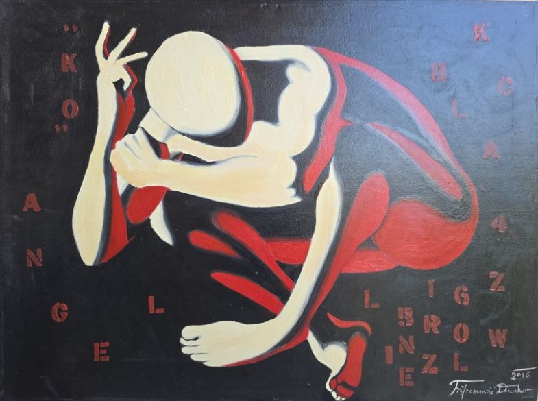 Balans, Dusko Trifunovic, sa 63×83 cm, bez 50×70 cm, metalne nitne pozlata i ulje na platnu, sertifikat, 106200 dinara – ZAVEDENA U KATALOGU IZLOŽBE U GALERIJI GUARNERIUS IZLOŽBA „VIZANTIJA“ – Duška Angela Trifunovića OD 07. DO 27.03.2020. godine