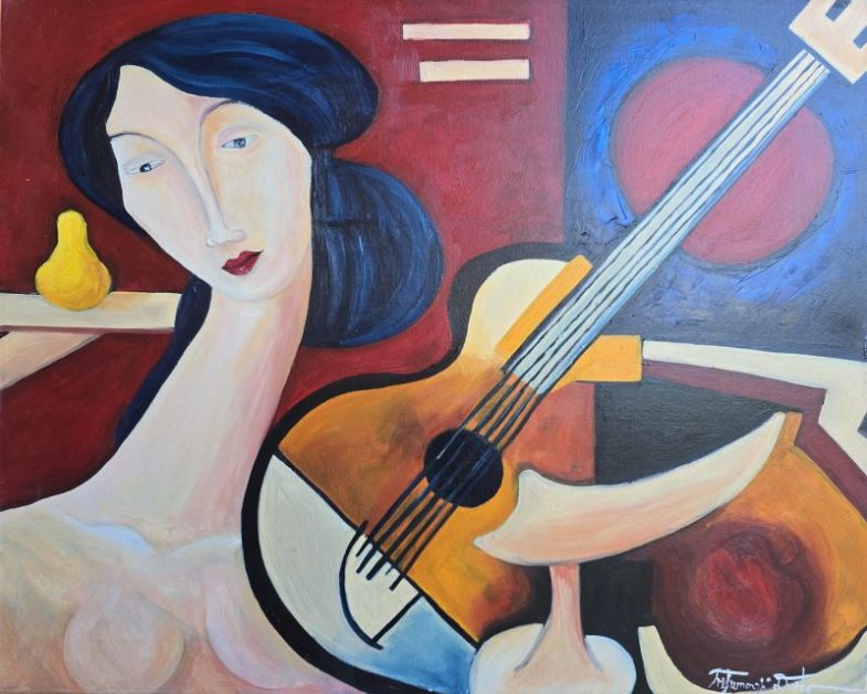 Devojka sa gitarom 2, Dusko Trifunovic, 120×100 cm, ulje na platnu, sertifikat, 129800 dinara