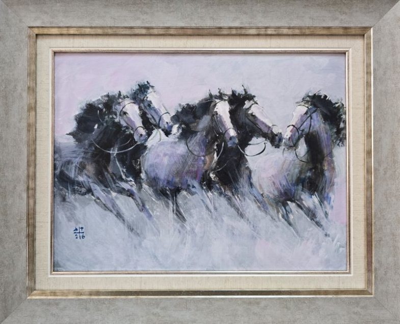 Konji 20, Dragan Tasić, akril na platnu kaširano na kartonu, sa 42×52 cm, bez 30×40 cm, sertifikat, 11210 dinara