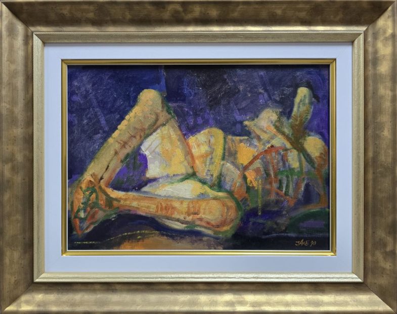Ležeća muška figura, Ljubodrag Janković Jale, ulje platno na kartonu, 1990.god, sa 38×48 cm, bez 25×35 cm, sertifikat, 64900 dinara