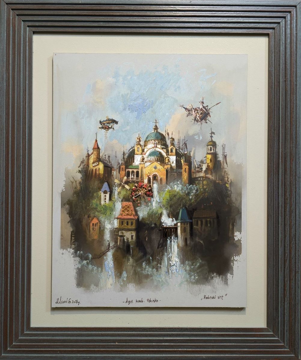 Umetnik Goran Mitrović donosi delo „Nebeski vrt“, izrađeno digitalnom kombinovanom tehnikom uz dodata aplikovanja i ručno oslikane detalje uljanom bojom, stvarajući jedinstvenu, unikatnu sliku punu duhovne simbolike i harmoničnih tonova.