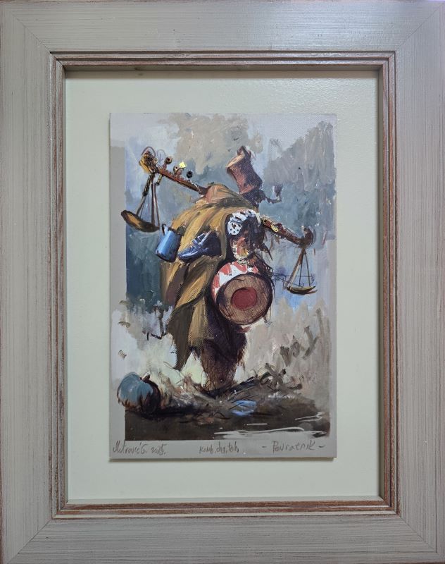 Povratnik, Goran Mitrović, bez rama 32×21 cm, sa ramom 52×41 cm, digitalna kombinovana tehnika sa dodatim aplikacijama i islikanim detaljima uljanom bojom, unikat slika, sertifikat, 35400 dinara