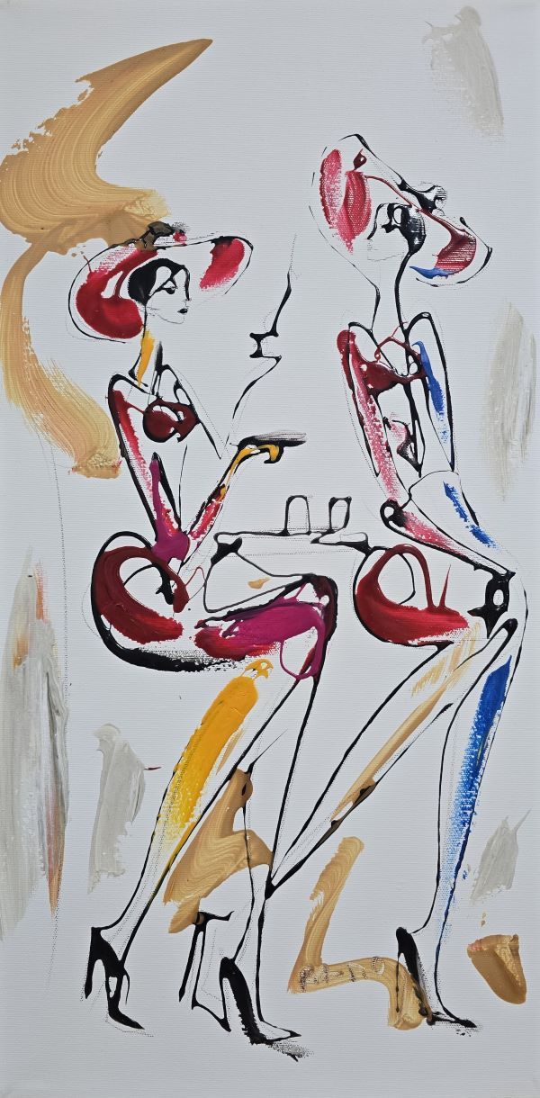 Rađena akrilnom tehnikom na platnu, slika odiše modernim umetničkim izrazom i pažljivo izbalansiranom kompozicijom. Dimenzije 60×30 cm bez rama čine je pogodnom za savremene enterijere koji traže umetnost sa karakterom i toplinom. Rajšićev prepoznatljiv stil donosi ritam svakodnevice pretvoren u umetnički doživljaj.