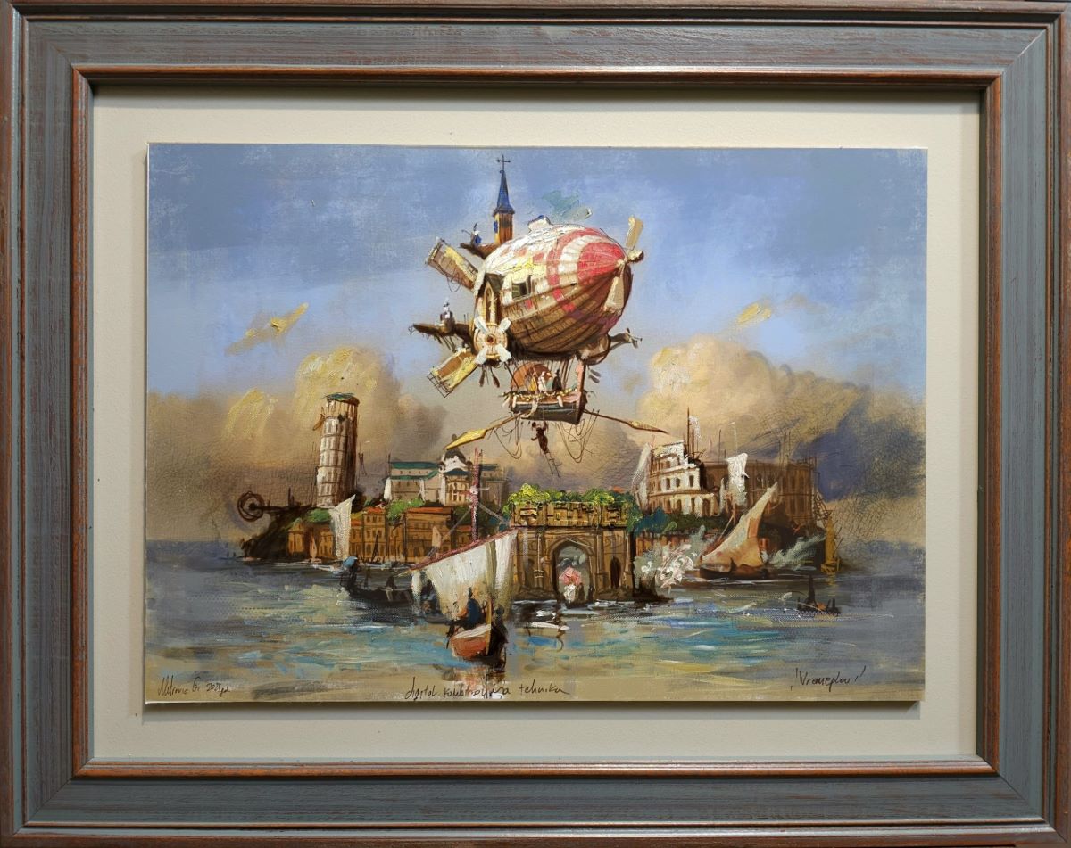 Vremeplov, Goran Mitrović, bez rama 40×50 cm, sa ramom 60×70 cm, digitalna kombinovana tehnika sa dodatim aplikacijama i islikanim detaljima uljanom bojom, unikat slika, sertifikat, 46020 dinara